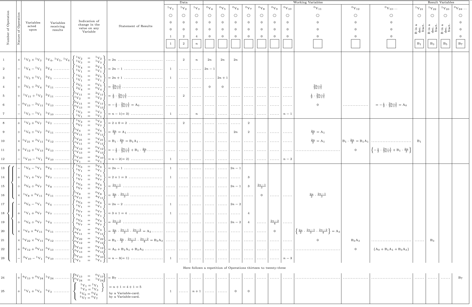 - 최초의 컴퓨터 프로그램(Ada Lovelace’s note G1942): Numbers of Bernoulli 1, –1/2, 1/6, –1/30, 1/4, –1/30 … 합을 적분 증명에 사용. 확률에 사용.